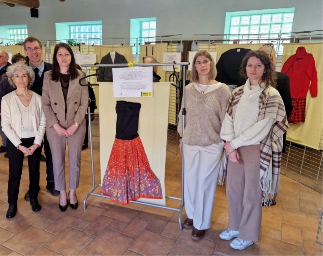 Nelle foto: il sindaco Macchia con Davide Arri, esponenti di Amnesy e SOS donna; alcuni vestiti esposti