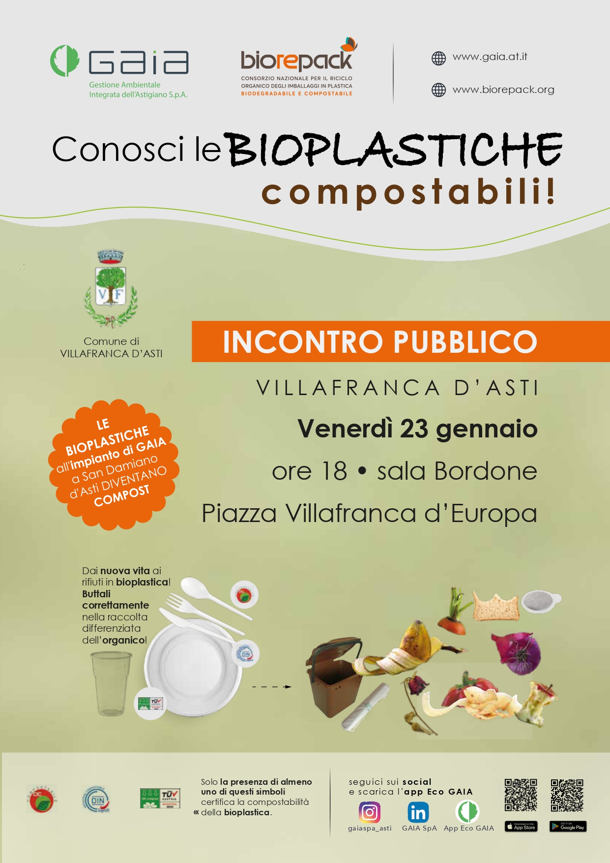 L'iniziativa è promossa da GAIA, Biorepack e dal Comune di Villafranca d'Asti, nell’ambito della raccolta rifiuti nei Comuni consorziati CBRA.